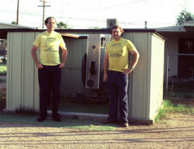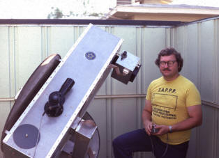 I visited Lou Boyd often during the development of his system, the "Phoenix-10."  Russ Genet and Lou Boyd after the first full night of automatic operation, October 12, 1983.